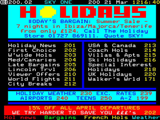 Sky One Teletext pages from 1997