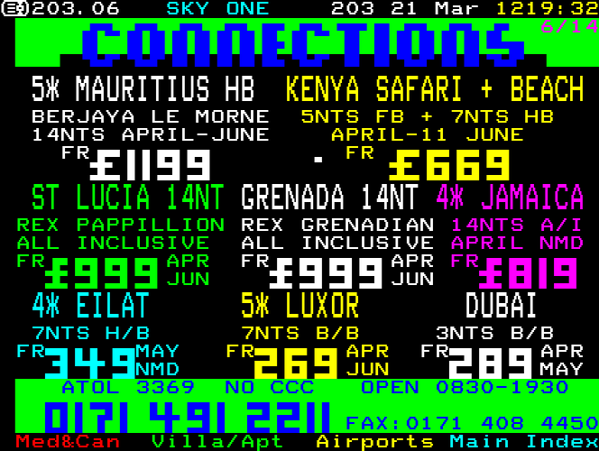 Sky One Teletext pages from 1997