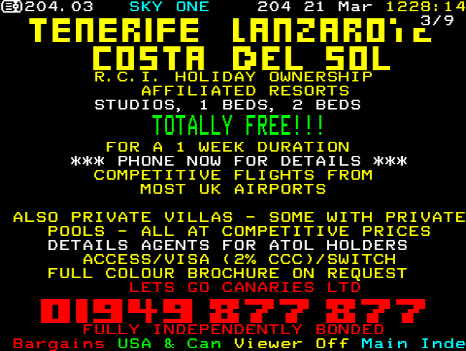Sky One Teletext pages from 1997