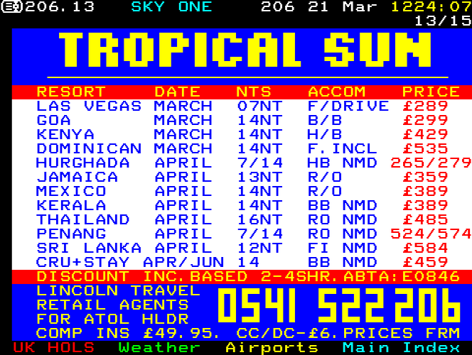 Sky One Teletext pages from 1997