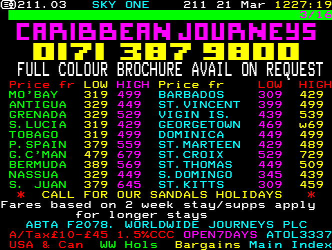 Sky One Teletext pages from 1997