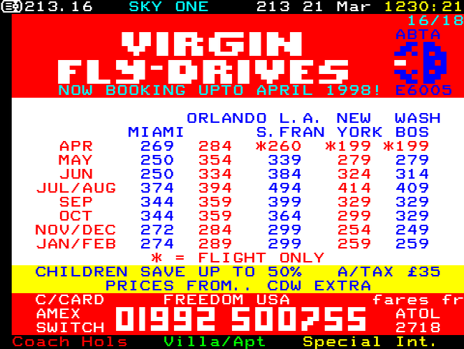 Sky One Teletext pages from 1997