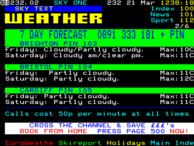 I tried to contact Sky to get permission to use these pages but they don't want to be contacted! I'll wait for them to contact me.