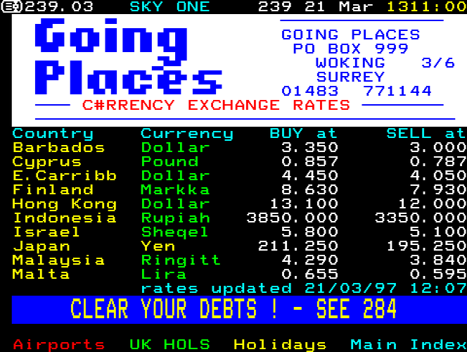 I tried to contact Sky to get permission to use these pages but they don't want to be contacted! I'll wait for them to contact me.
