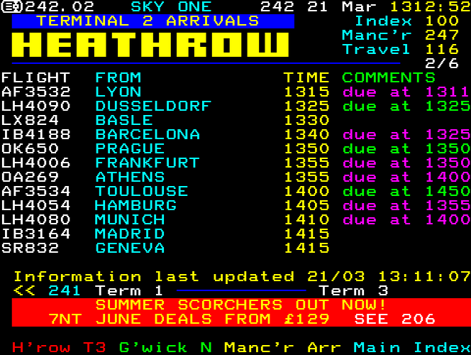 Sky One Teletext pages from 1997