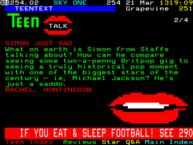 I tried to contact Sky to get permission to use these pages but they don't want to be contacted! I'll wait for them to contact me.