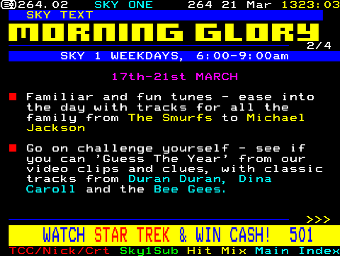 I tried to contact Sky to get permission to use these pages but they don't want to be contacted! I'll wait for them to contact me.