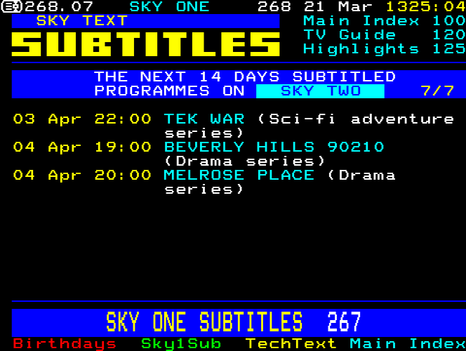 Sky One Teletext pages from 1997