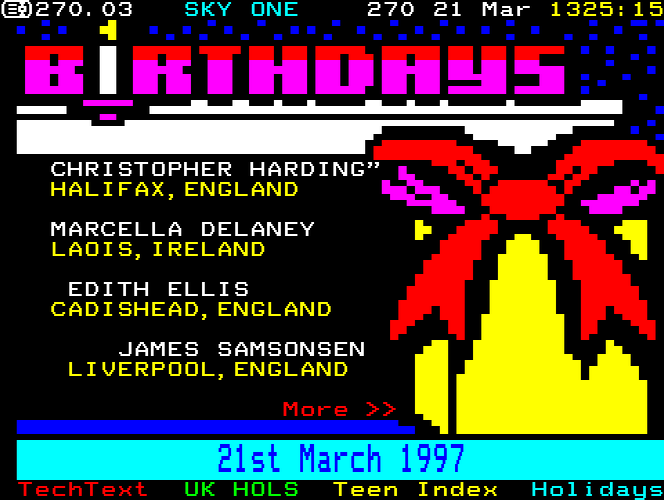 Sky One Teletext pages from 1997