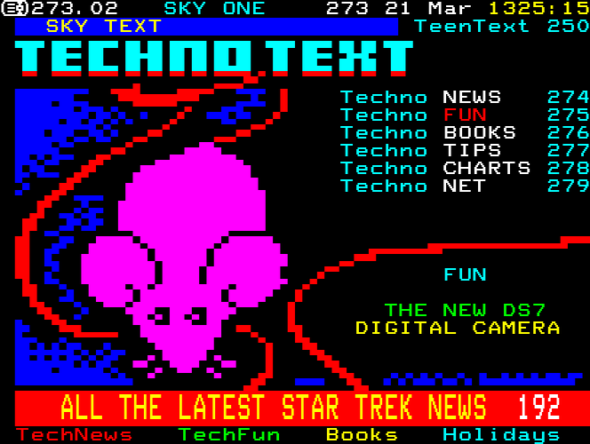 Sky One Teletext pages from 1997