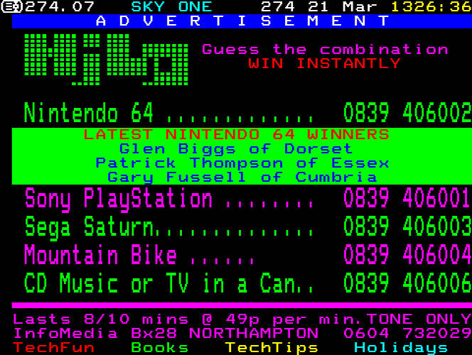 Sky One Teletext pages from 1997