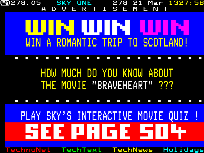 Sky One Teletext pages from 1997