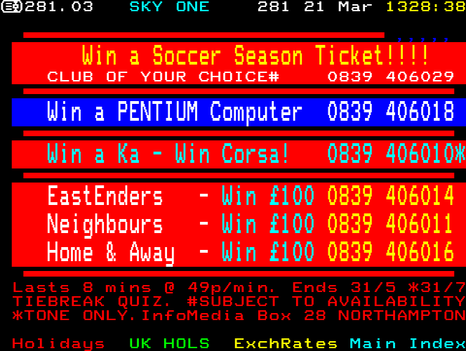 Sky One Teletext pages from 1997