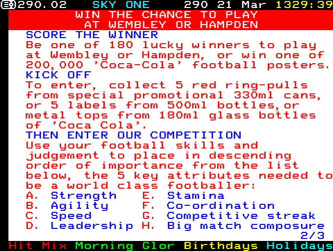 I tried to contact Sky to get permission to use these pages but they don't want to be contacted! I'll wait for them to contact me.
