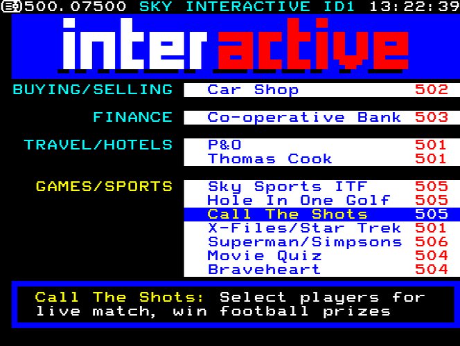 Sky One Teletext pages from 1997