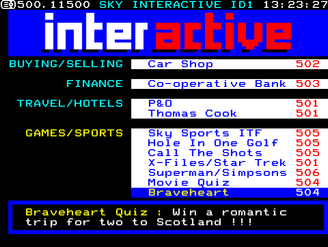 I tried to contact Sky to get permission to use these pages but they don't want to be contacted! I'll wait for them to contact me.