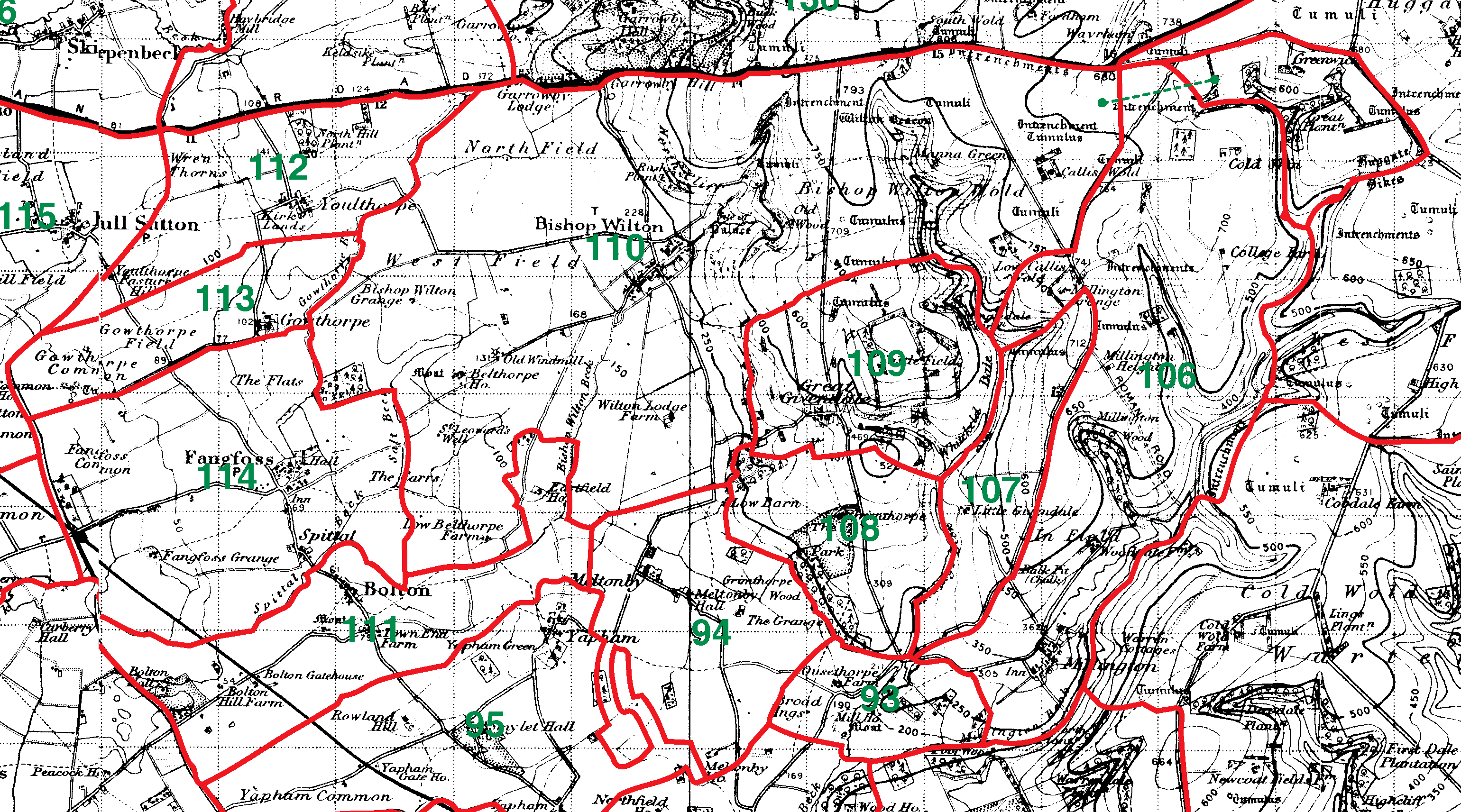 110=Bishop Wilton with Belthorpe | 111=Bolton | 112=Youlthorpe | 113=Gowthorpe |