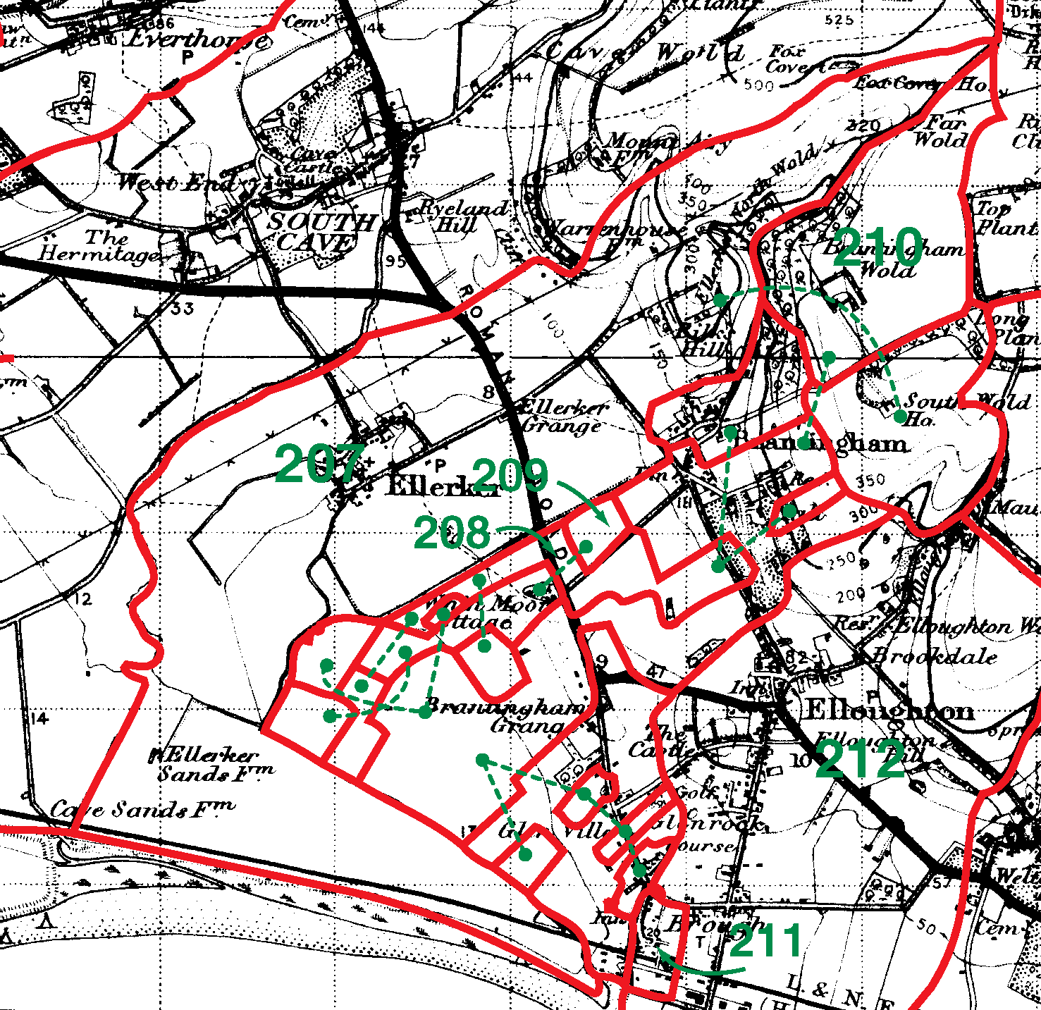 207=Ellerker | 208=Brantingham | 209=Brantingham | 210=Thorpe Brantingham |