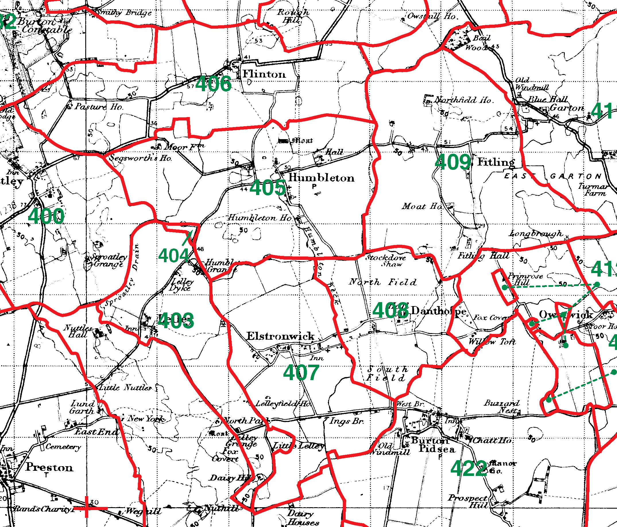 405=Humbleton | 406=Flinton | 407=Elstronwick | 408=Danthorpe | 409=Fitling |