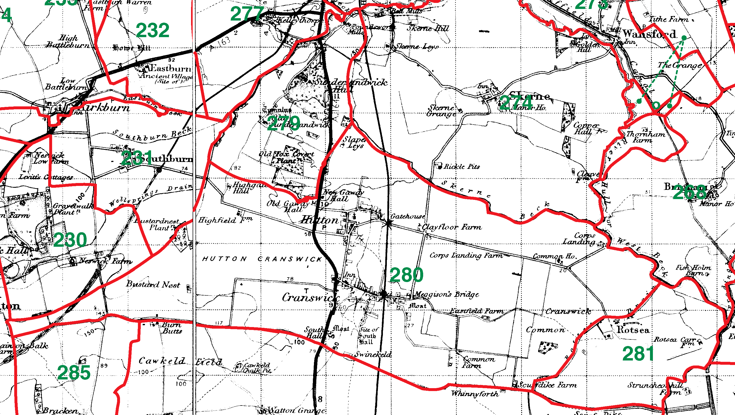 279=Sunderlandwick | 280=Hutton Cranswick | 281=Rotsea |