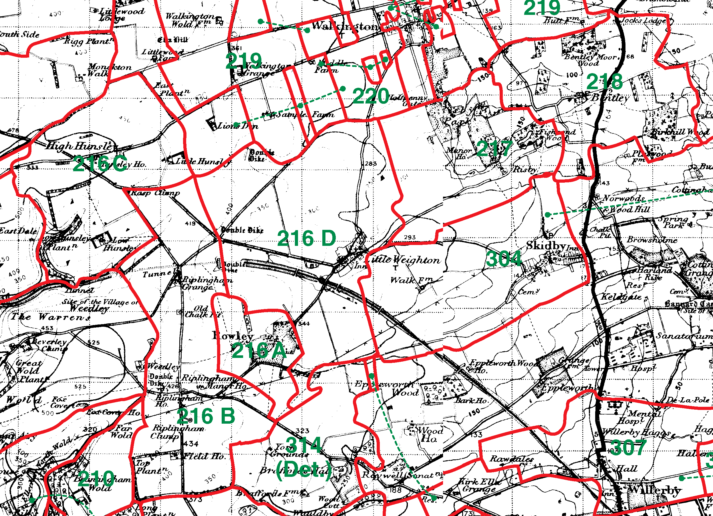 216A=Rowley | 216B=Riplingham | 216C=High Hunsley | 216D=Little Weighton | 217=Risby |