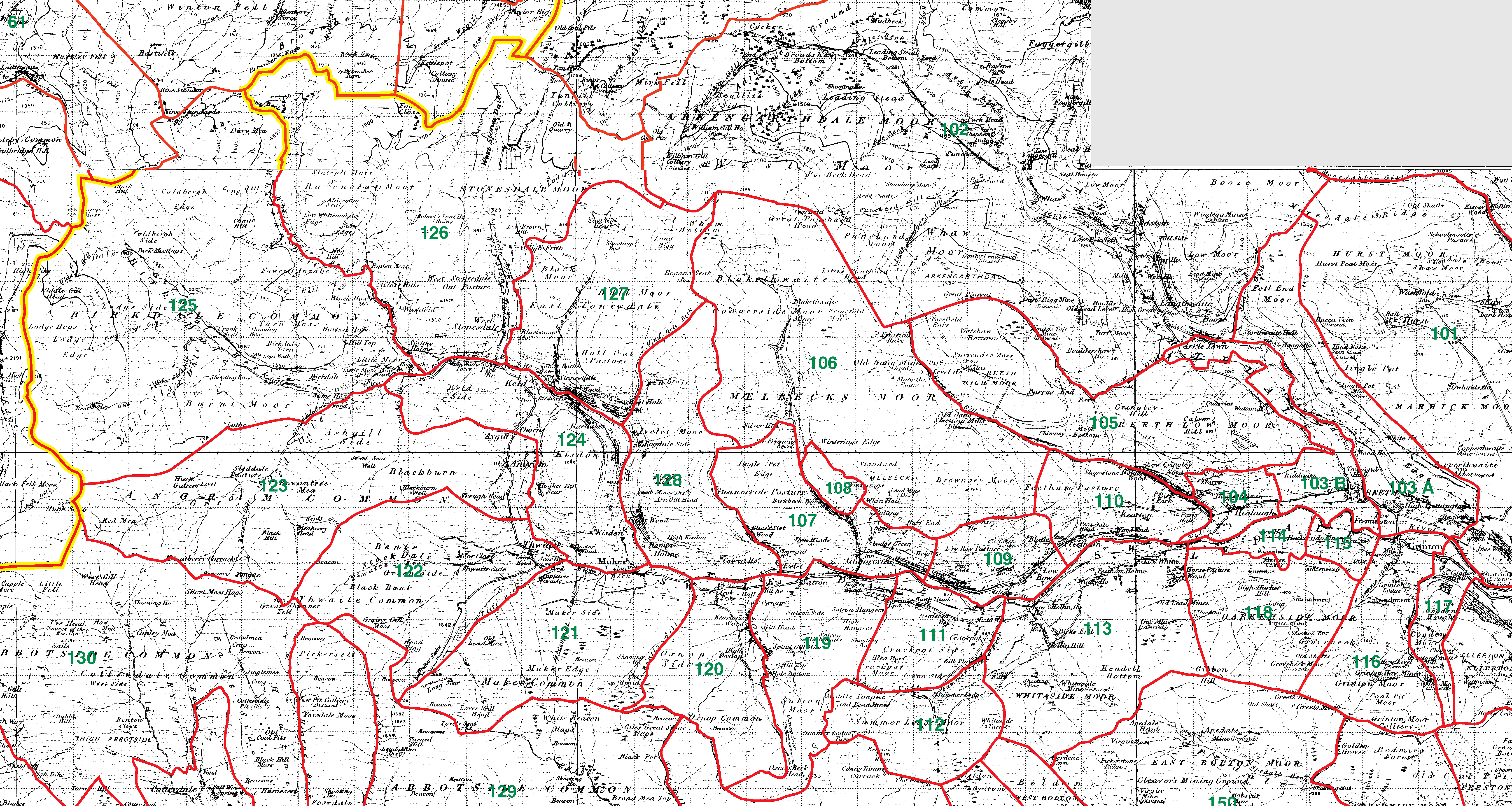 122=Thwaite | 123=Angram | 124=Keld and Thorns | 125=Birk Dale | 126=West Stones Dale |