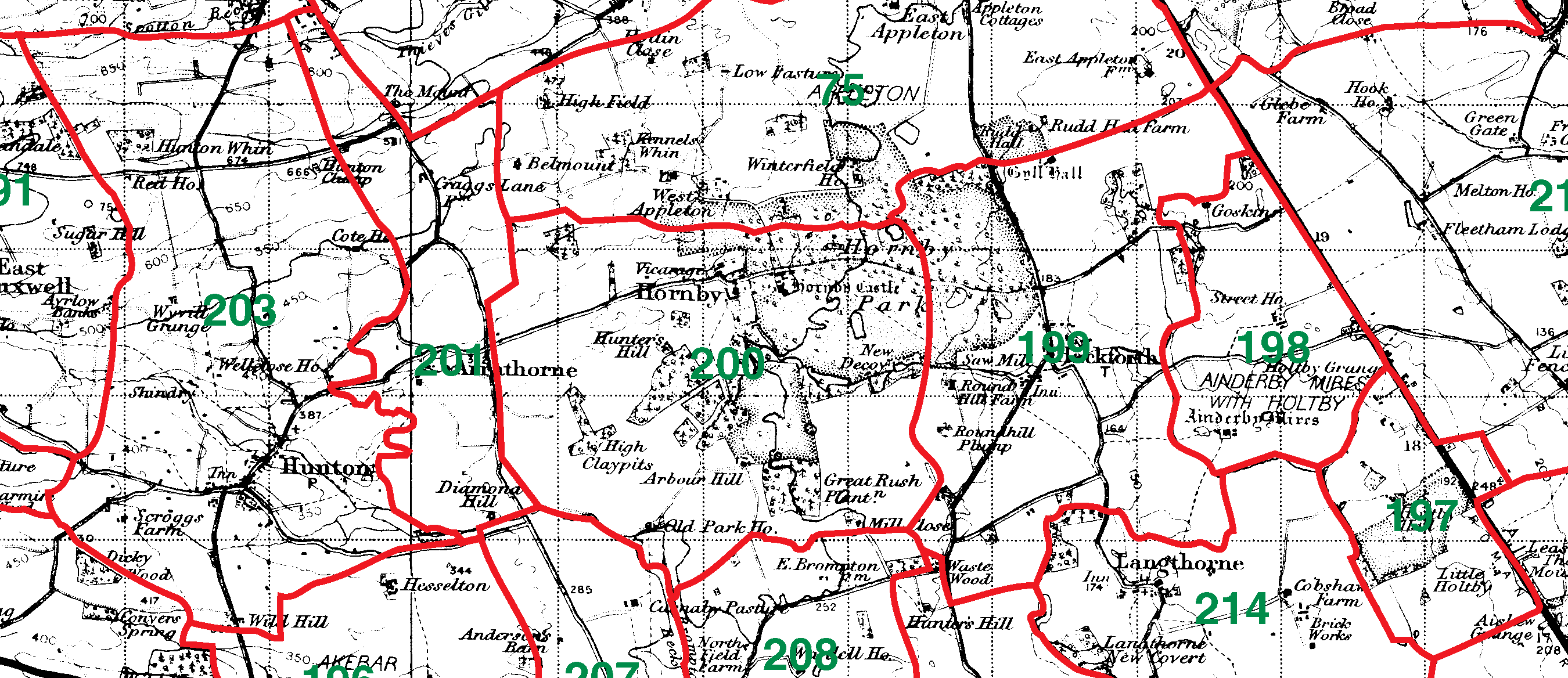 197=Holtby | 198=Ainderby Mires | 199=Hackforth | 200=Hornby |