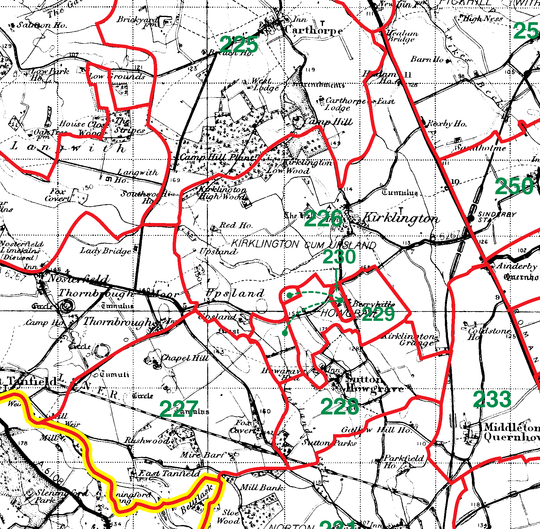 226=Kirklington cum Upsland | 227=East Tanfield | 228=Sutton Howgrave | 229=Howgrave | 230=Nunwick |
