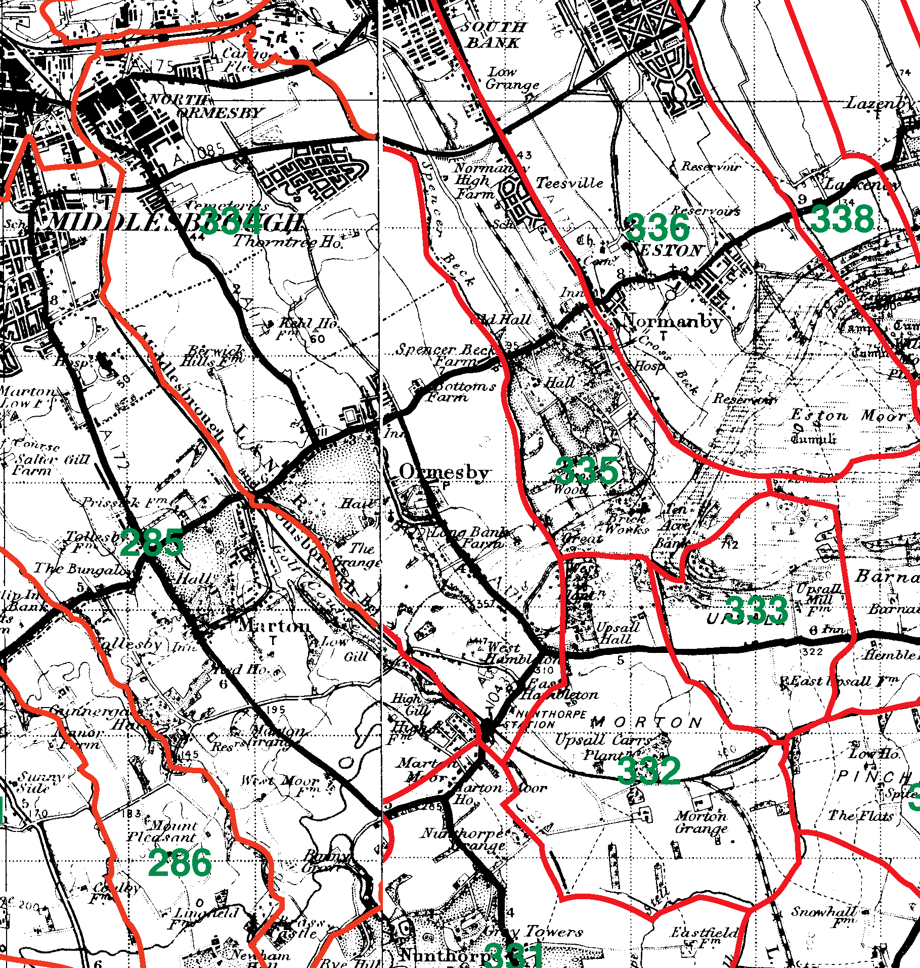 332=Morton | 333=Upsall | 334=Ormesby | 335=Normanby | 336=Eston |