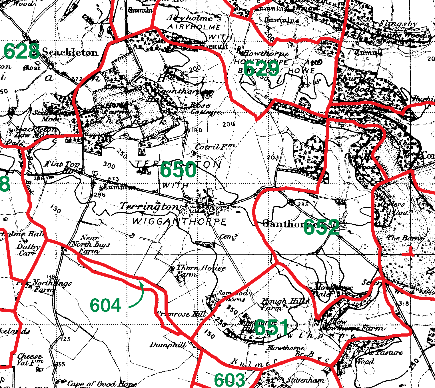 650=Terrington with Wiganthorpe | 651=Mowthorpe | 652=Ganthorpe |