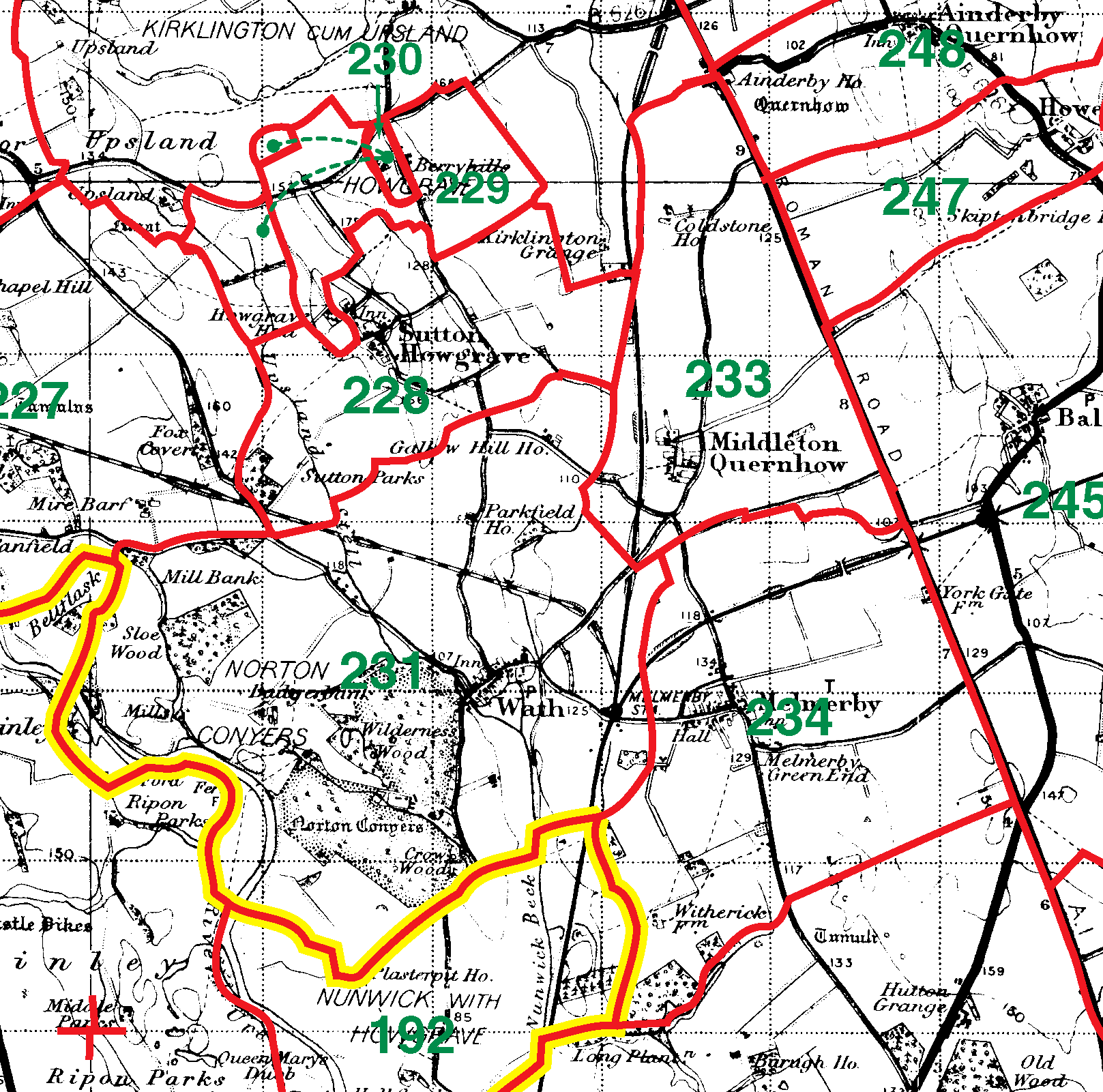 231=Norton Conyers | 232=Wath | 233=Middleton Quernhow | 234=Melmerby |