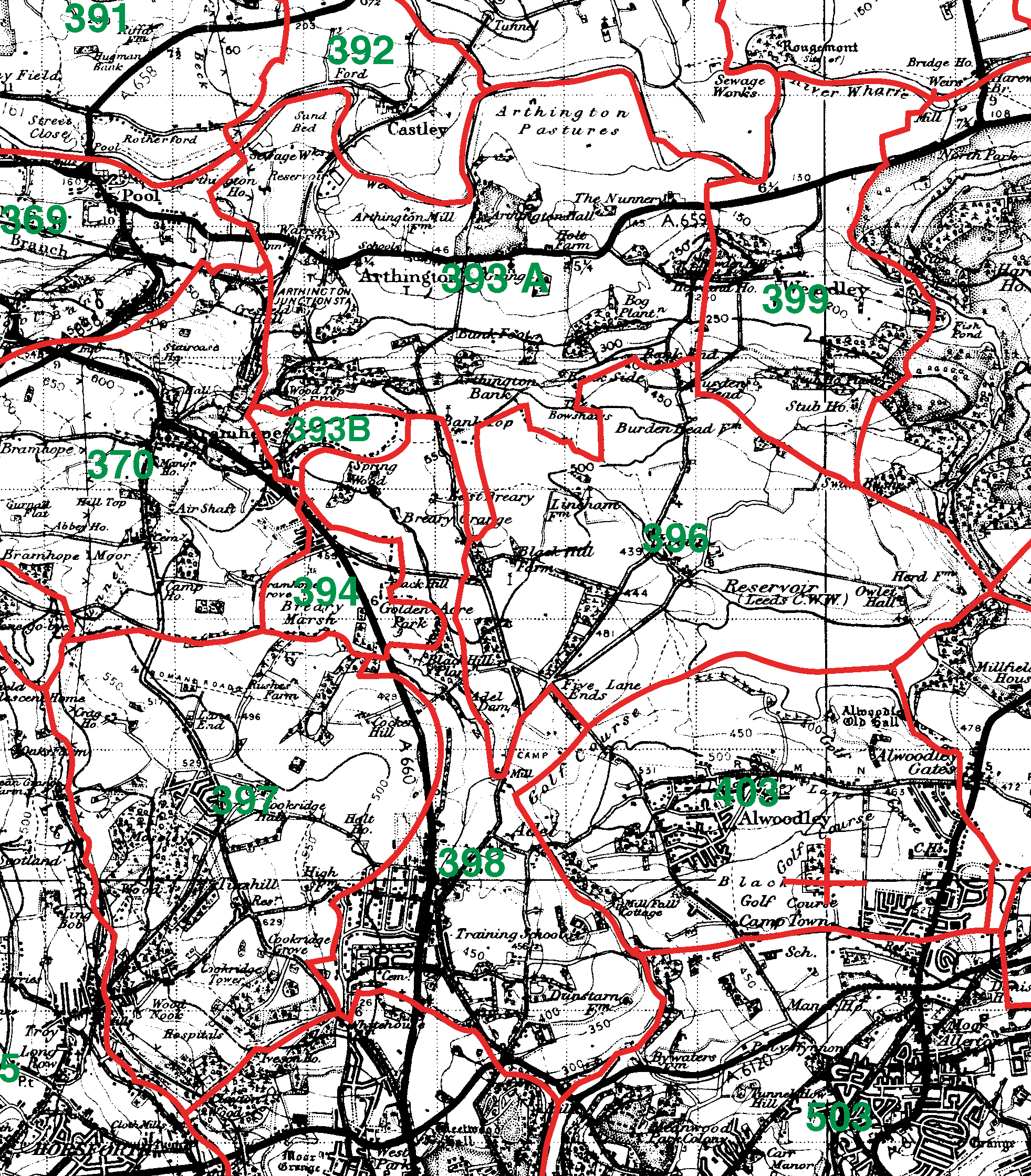 393A=Arthington | 393B=Arthington | 394=West Breary | 395=East Breary | 396=Eccup |