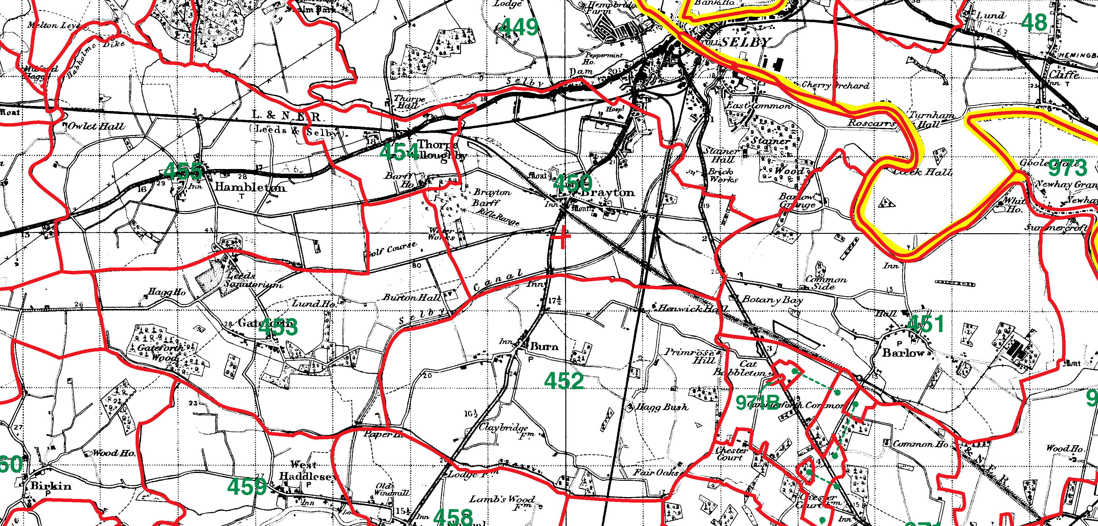 450=Brayton | 451=Barlow | 452=Burn | 453=Gateforth | 454=Thorpe Willoughby |