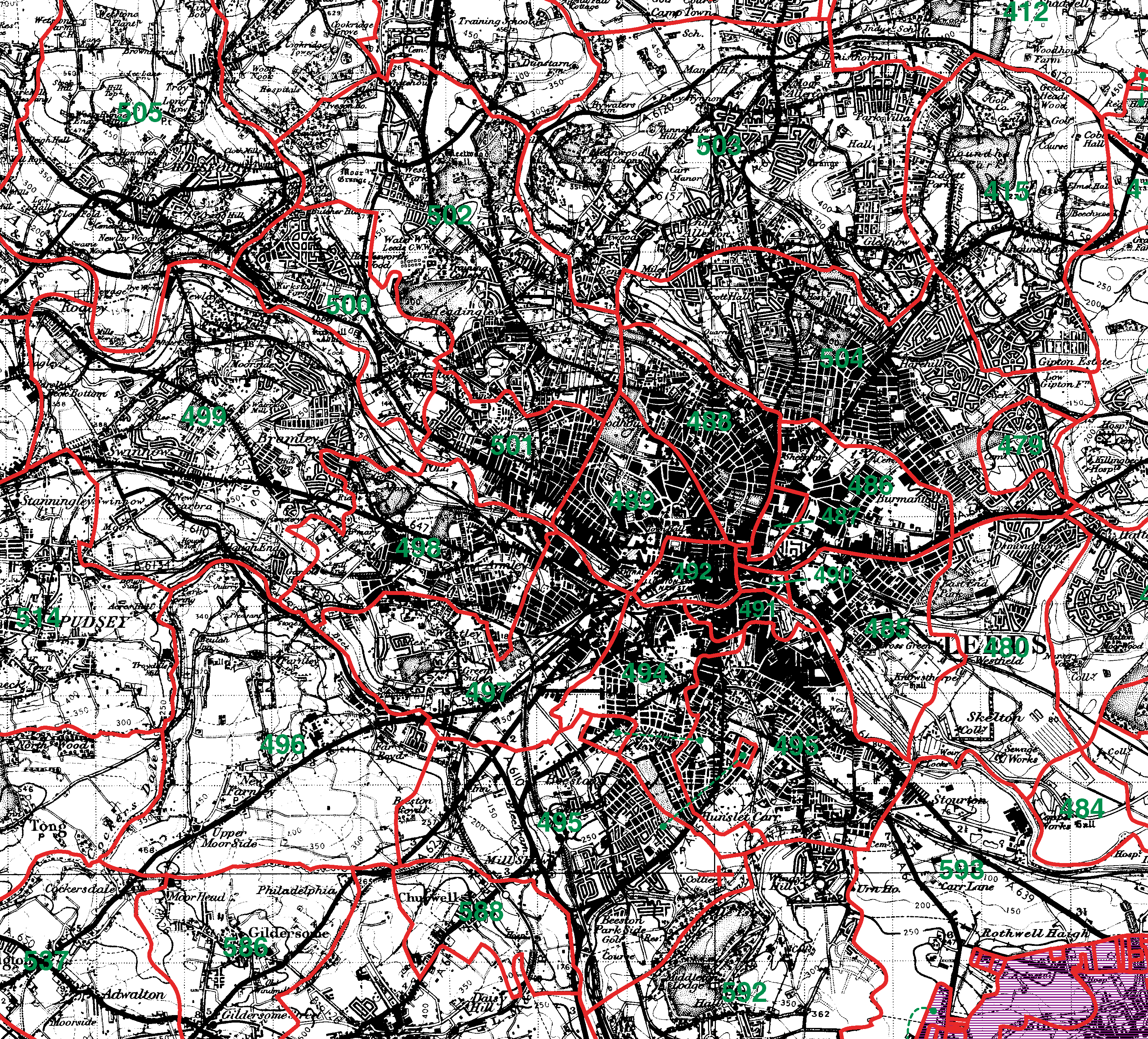 498=Armley | 499=Bramley | 500=Kirkstall | 501=Burley | 502=Headingley |