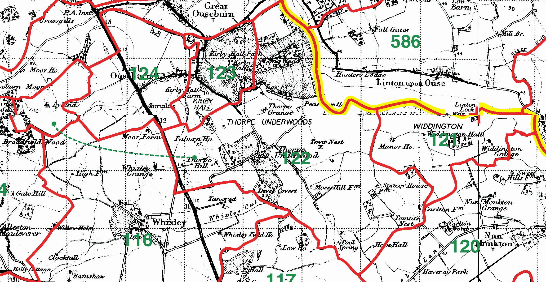 121=Widdington | 122=Thorpe Underwoods | 123=Kirby Hall | 124=Little Ouseburn | 125=Great Ouseburn |