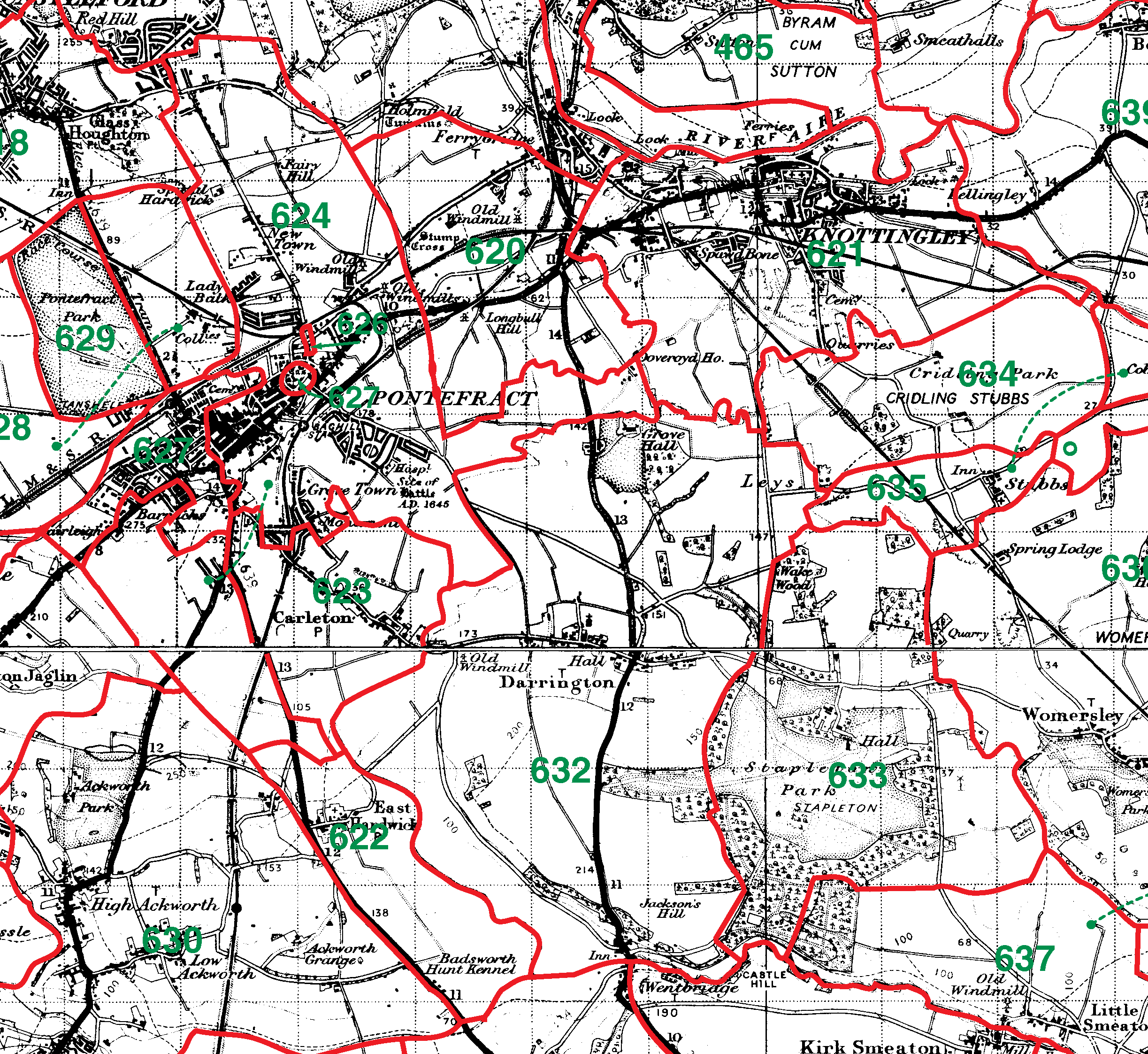 621=Knottingley | 622=East Hardwick | 623=Carleton | 624=Pontefract | 625=Castle Precincts |