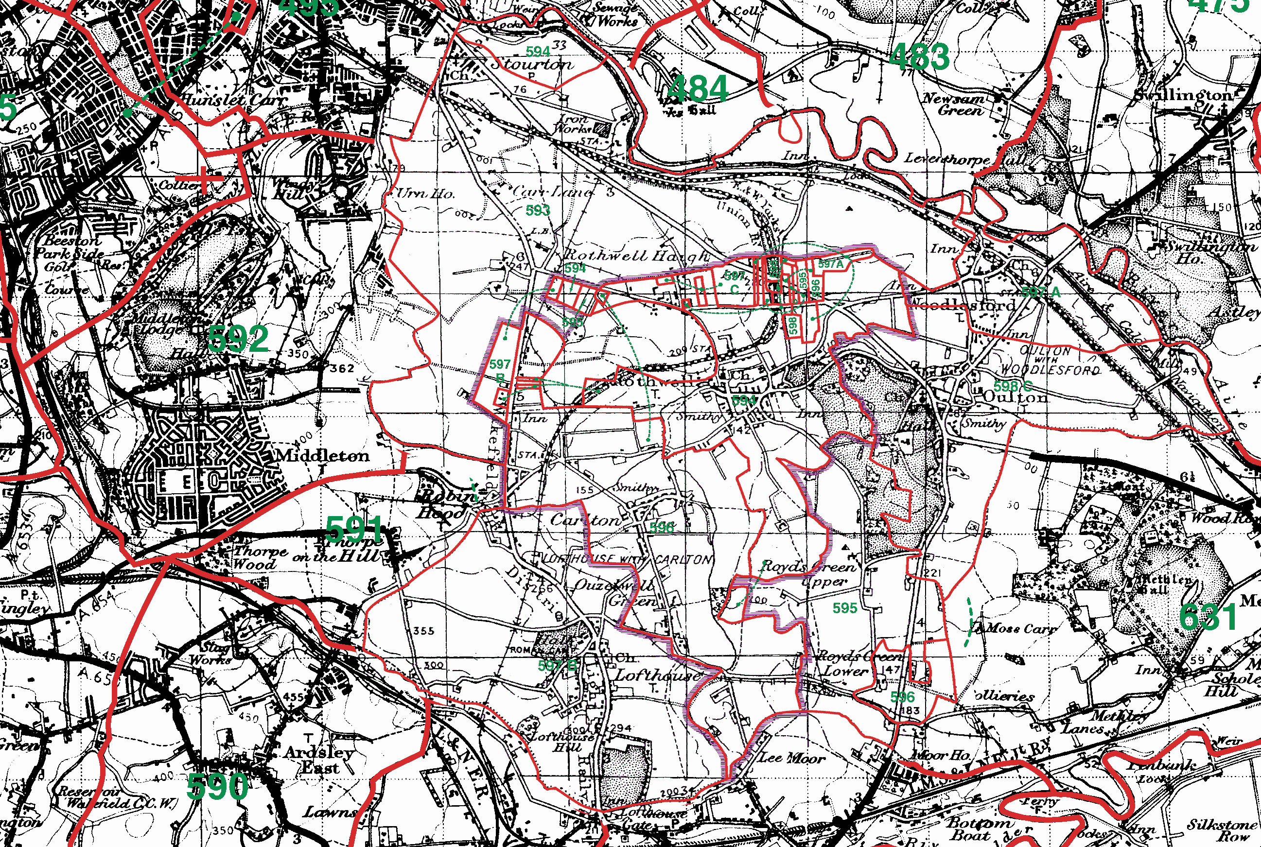 591=Thorpe | 592=Middleton | 593=Rothwell Haigh | 594=Rothwell | 595=Royds Green |