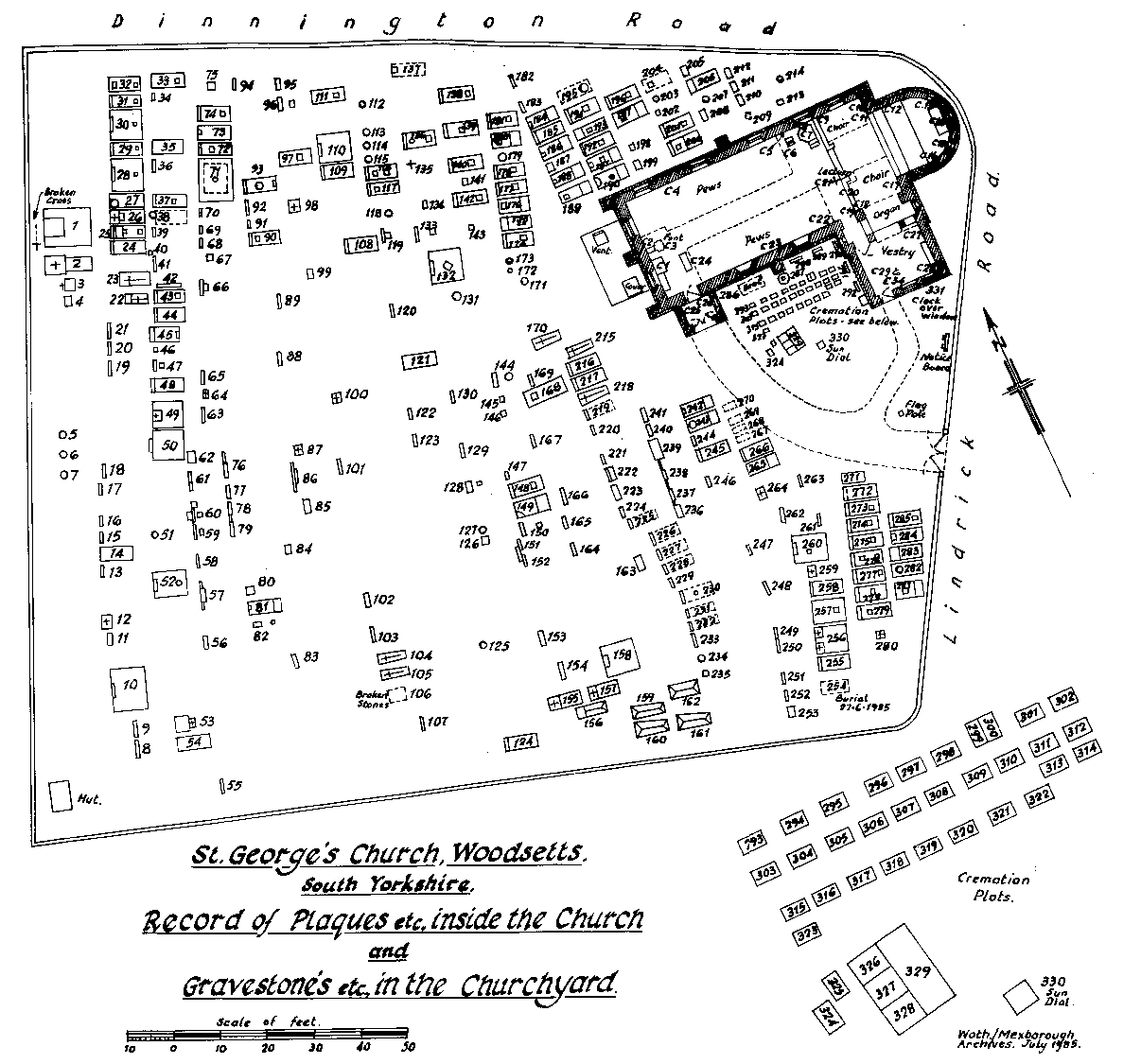 A plan of the graveyard by Wath and Mexborough Archives is included.