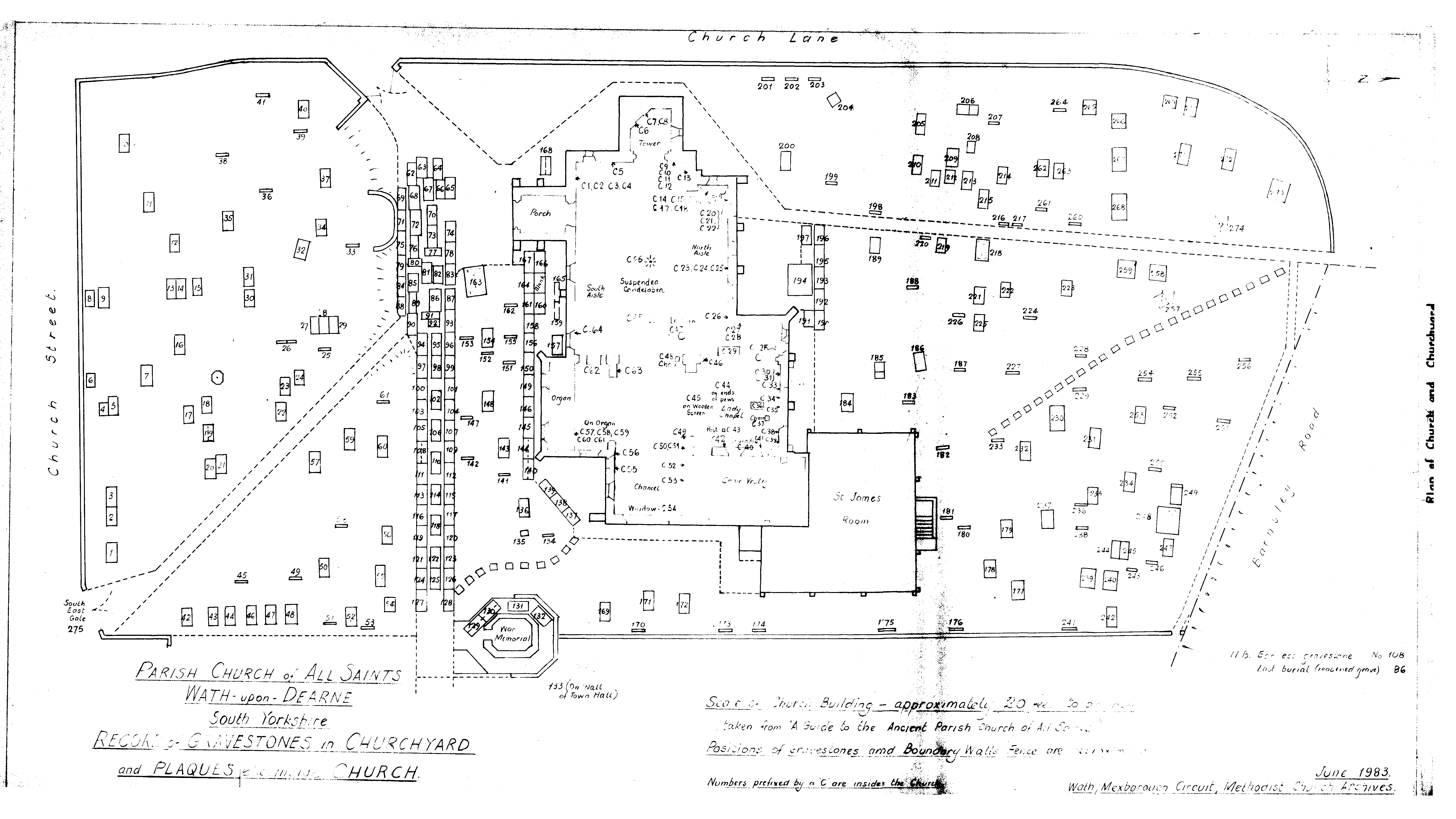 A plan of the graveyard by Wath and Mexborough Archives is included.