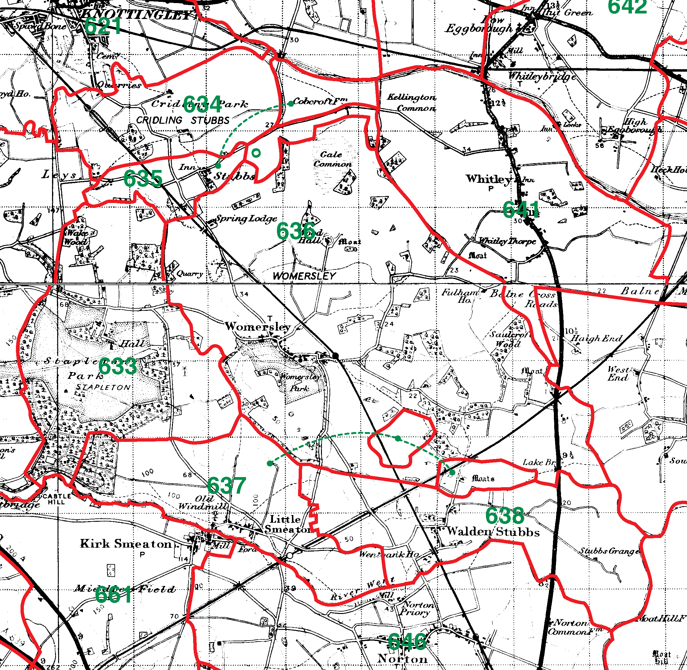634=Cridling Park | 635=Stubbs | 636=Womersley | 637=Little Smeaton | 638=Walden Stubbs |